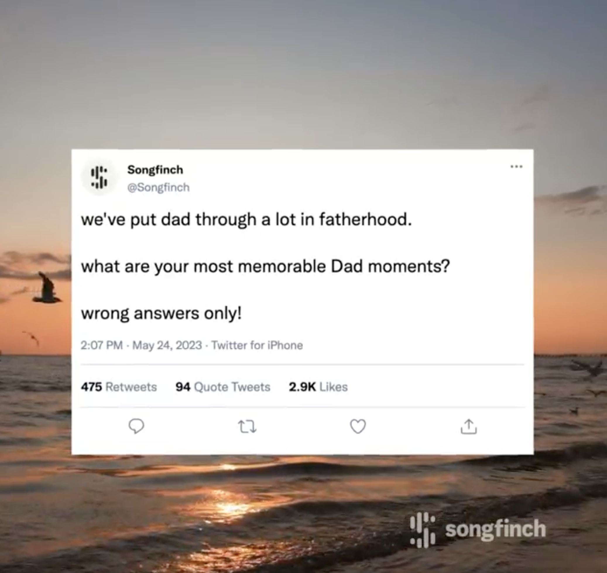 In Q2 of 2023, custom music company, Songfinch, was looking to keep the momemtum moving forward with a killer Father’s Day campaign. Having found viral success with reveal-style ads, the company was looking to break into new creative that hit its mark with the audience, without losing the tone its customers had come to know and love.
